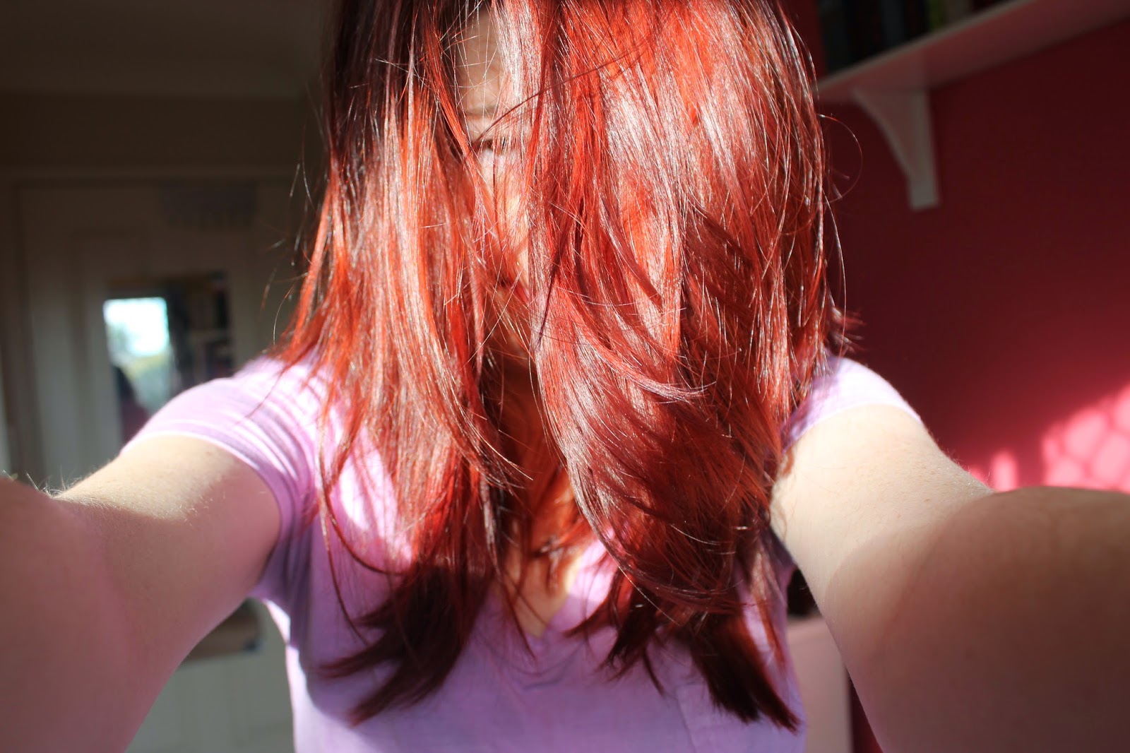 I'd been thinking about going (more) red for a while. I wasn't exactly sure how red, just *red*. The other day, I was in Priceline and saw that a colour I'd been considering was on special. "Screw it," I thought, and here we are.