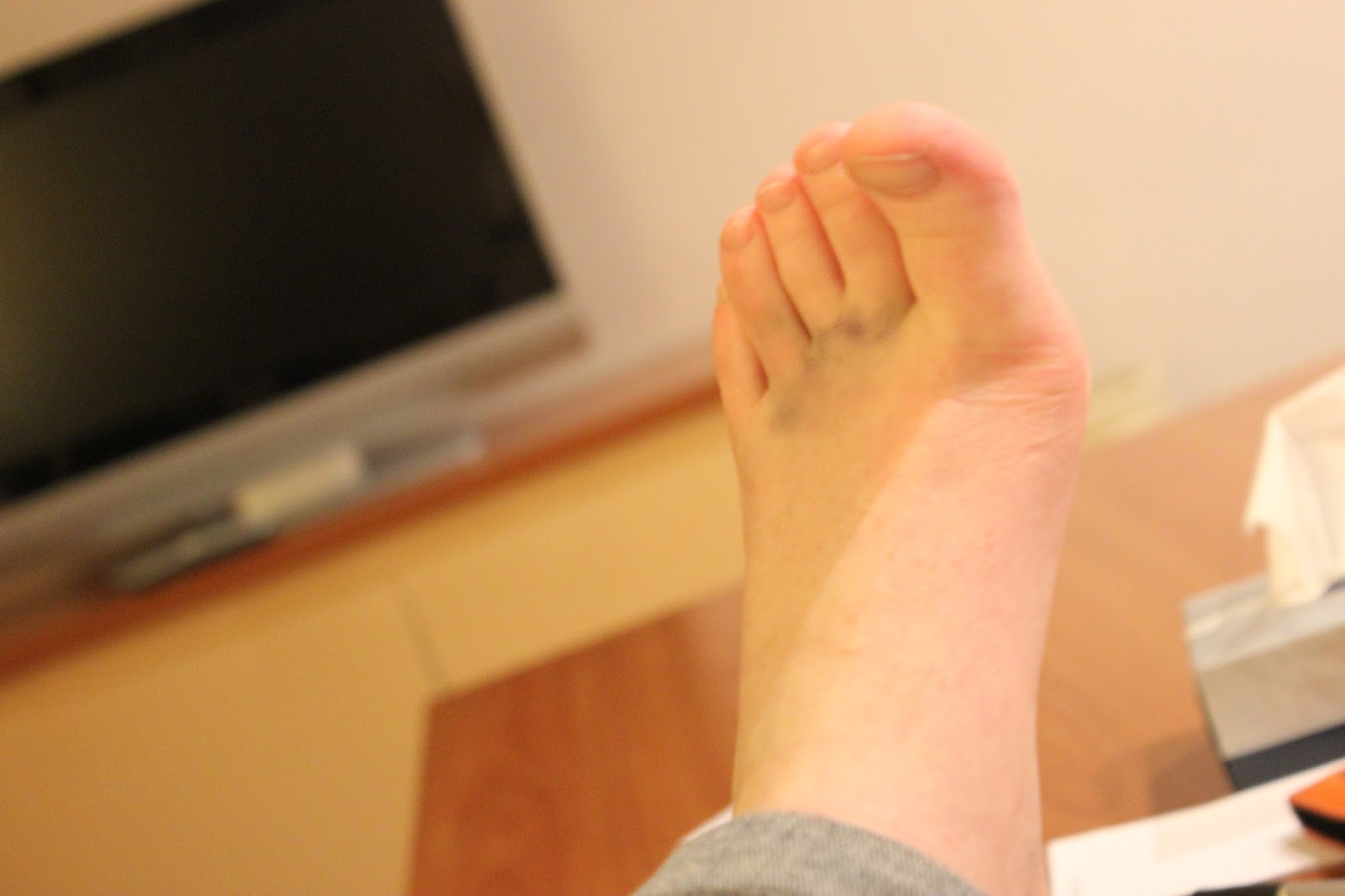 The aftermath of the terrible fall I had in Edinburgh. It was about a week old by this point? I still couldn't walk huge distances, I don't think. Lesson of the story: Don't jump around when it's been raining and hailing and snowing, kids. You'll fall and hurt yourself. I'm looking at you, fellow Australians.